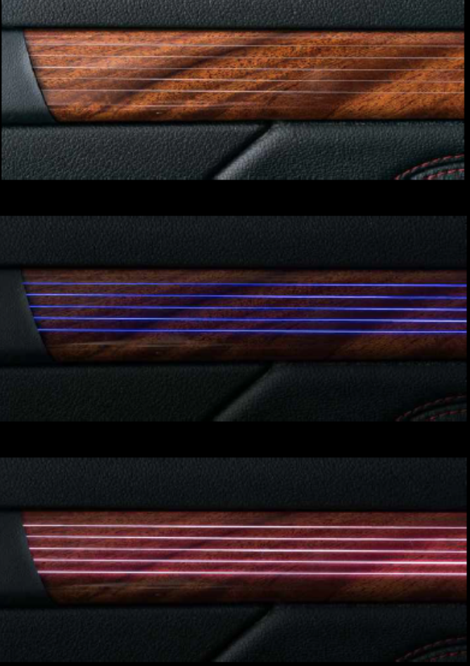 Thin line material illumination with high brightness, dynamic, and animated options.