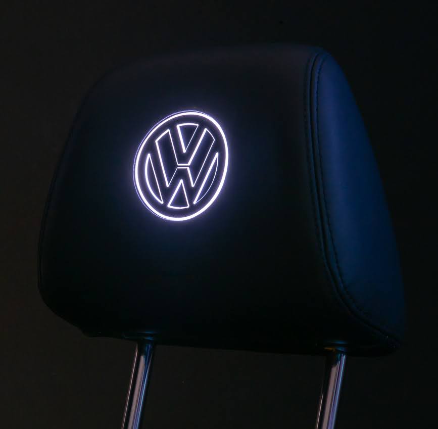 In-seat logo illumination with flexible & durable materials, hidden-when-off lighting.